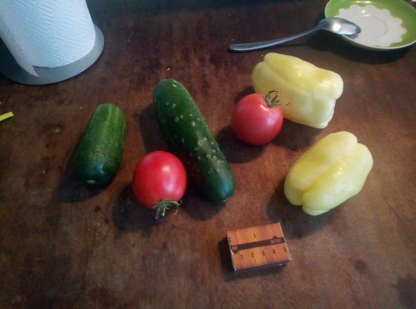 Целый парник огурчиков, перчиков, помидоров, и много всякой зелени.